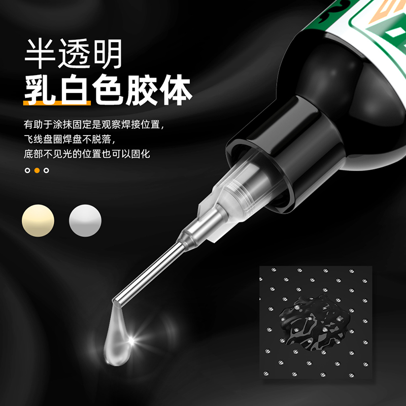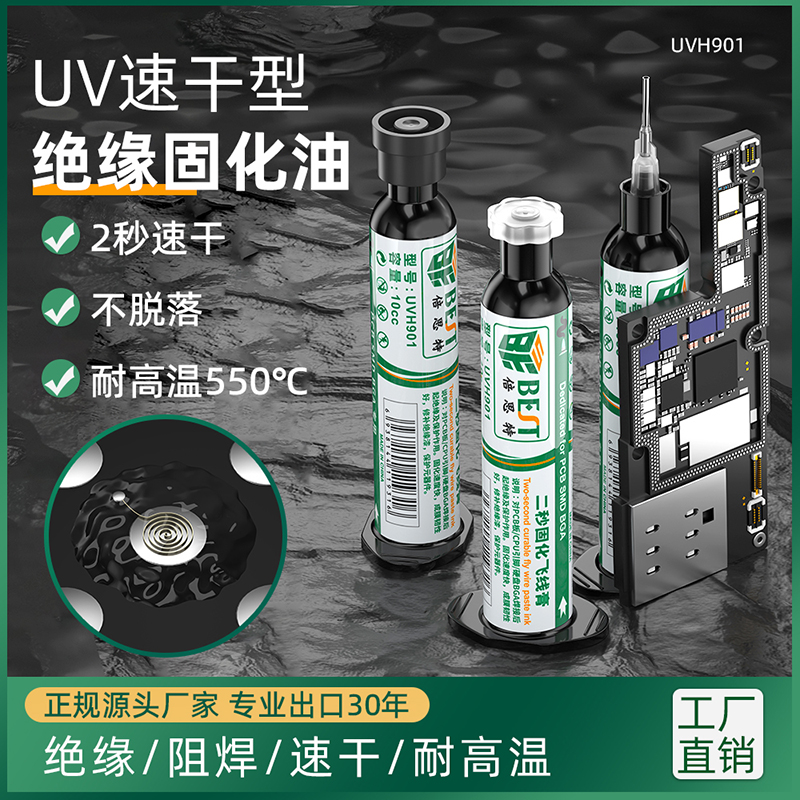 返回當前位置: 首頁 / 產品中心 / BST-UVH901 二秒固化飛線膏 UV速干型絕緣固化油 主板飛線2秒速干油 手機維修紫外光固化油 UV固化膠秒干油