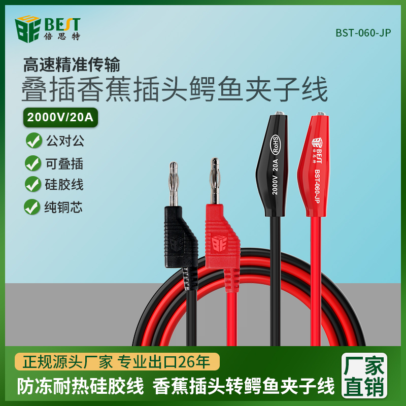 返回當前位置: 首頁 / 產品中心 / BST-060-JP 超導傳輸疊插香蕉插頭轉鱷魚夾子線 4mm燈籠頭轉鱷魚夾試驗線 純銅4mm香蕉插頭轉鱷魚夾高壓測試線萬用表雙頭夾子線 2000V20A大電流