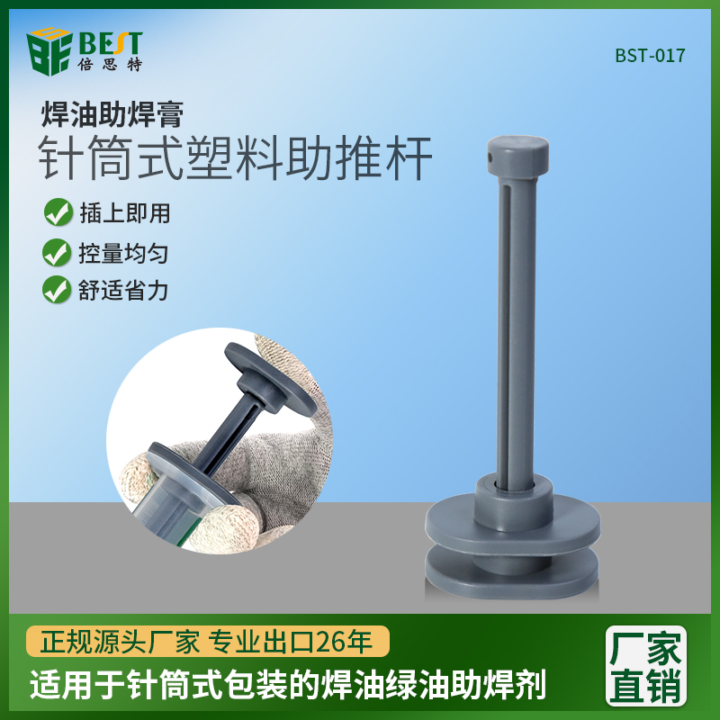 ? 產品名稱: 塑料針筒助推桿? 產品型號: BST-017? 產品類別: 錫漿焊油系列