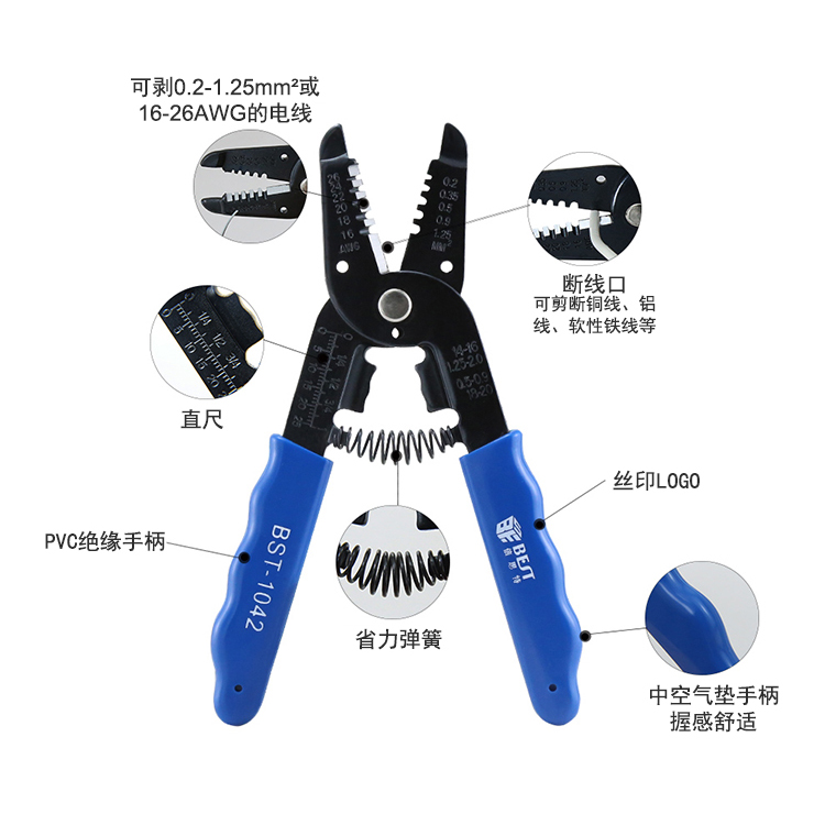 ? 產品名稱: 剝線鉗 電線鉗 電工剪鉗? 產品型號: BST-1042? 產品類別: 鉗子系列