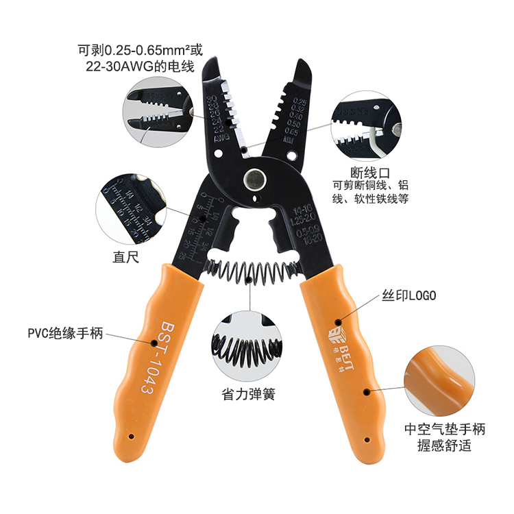 ? 產品名稱: 剝線鉗 電線鉗 電工剪鉗? 產品型號: BST-1043? 產品類別: 鉗子系列