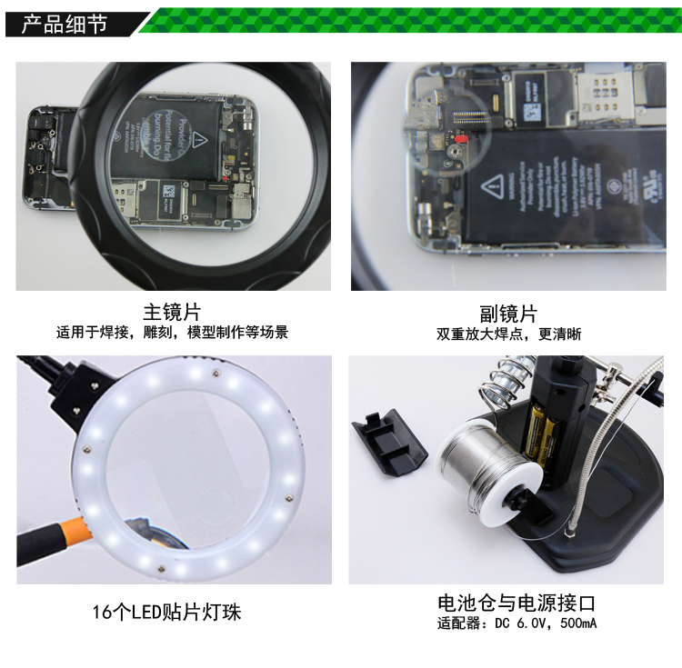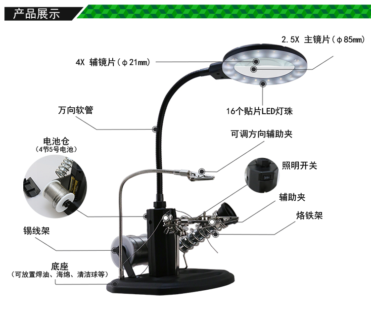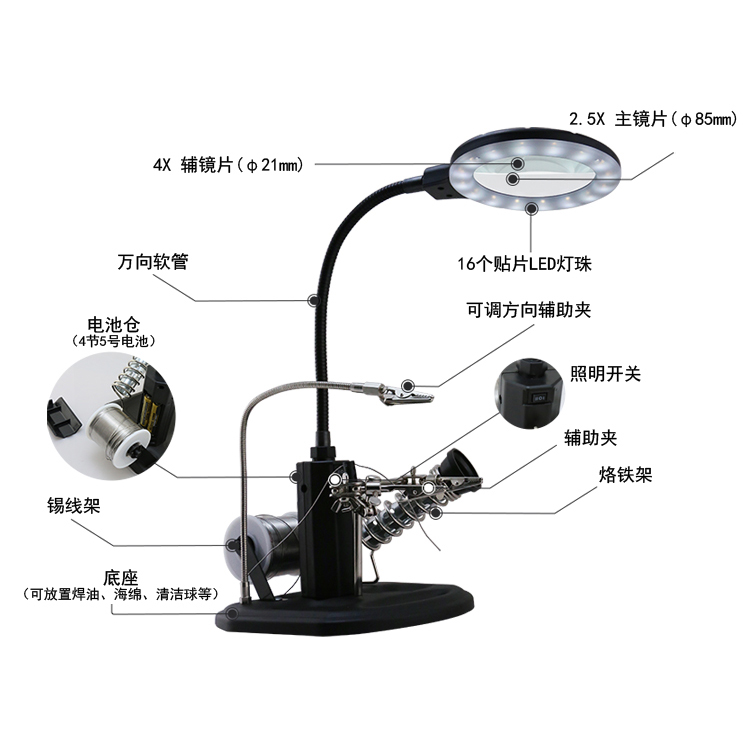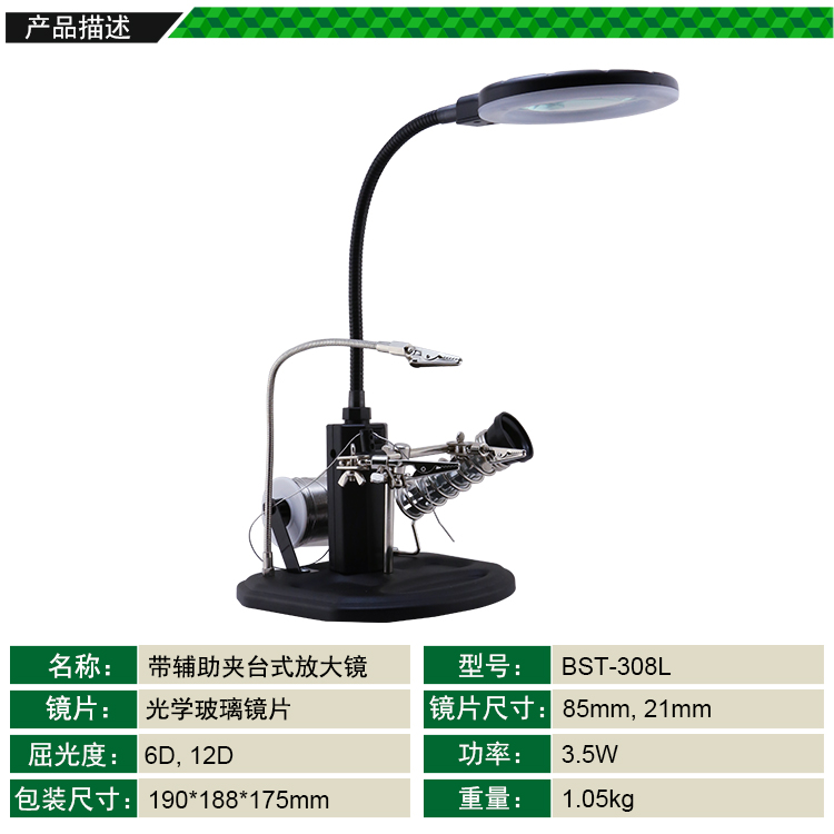 ? 產品名稱: 帶輔助夾臺式放大鏡