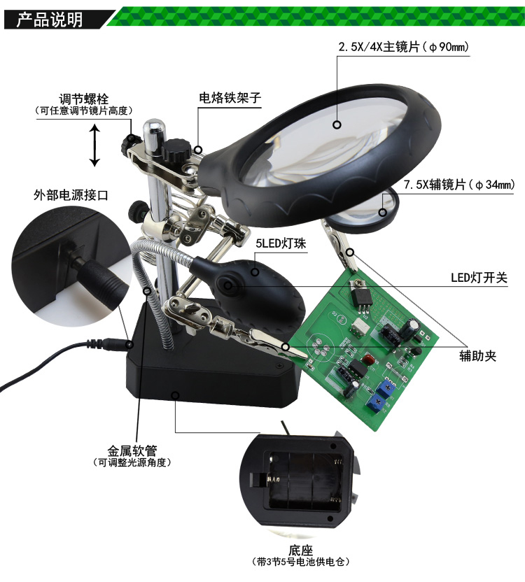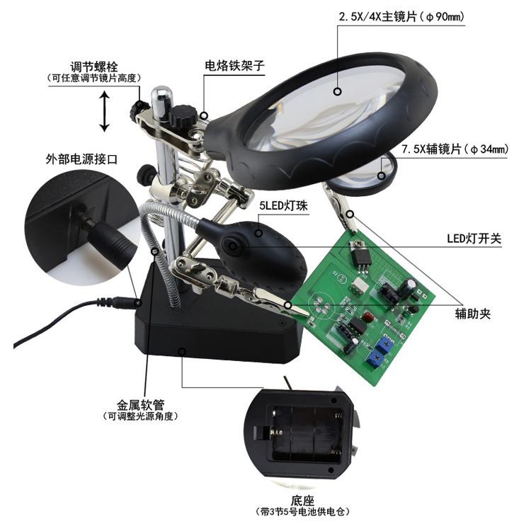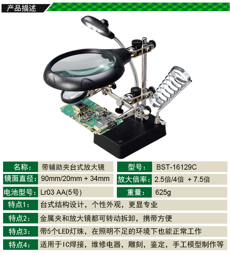 返回當前位置: 首頁 / 產品中心 / BST-16129C 帶輔助夾臺式放大鏡 焊接放大鏡