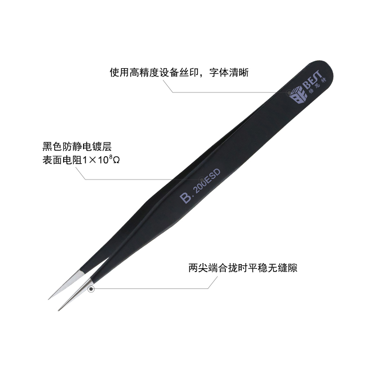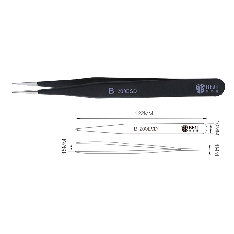 ? 產品名稱: 優質鋼化防靜電鑷子? 產品型號: BST-200ESD? 產品類別: 鑷子系列