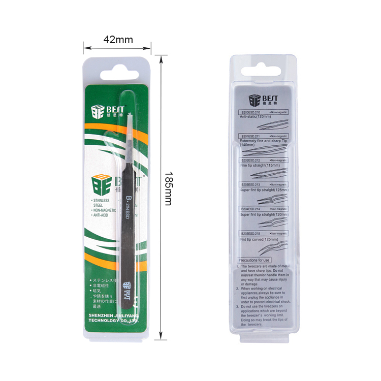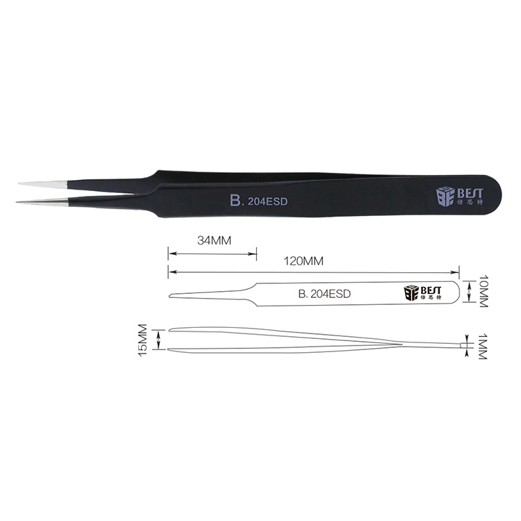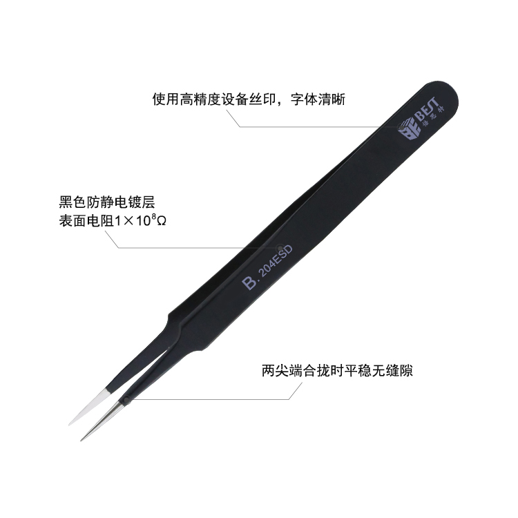 ? 產品名稱: 優質鋼化防靜電鑷子? 產品型號: BST-204ESD? 產品類別: 鑷子系列