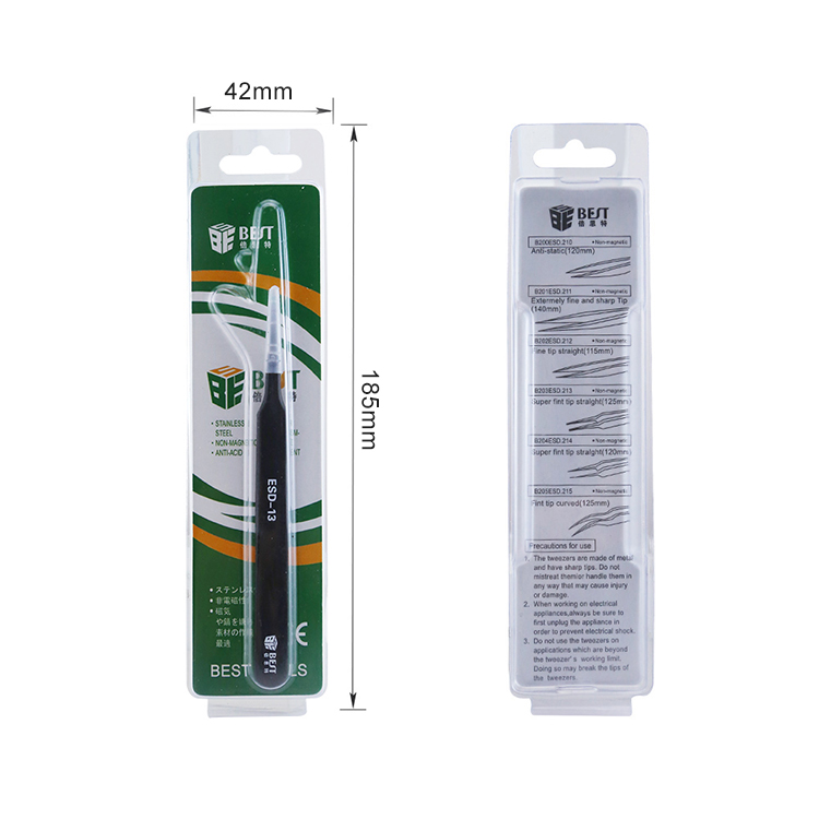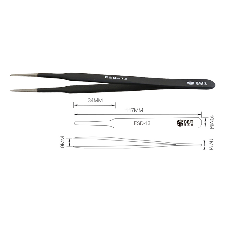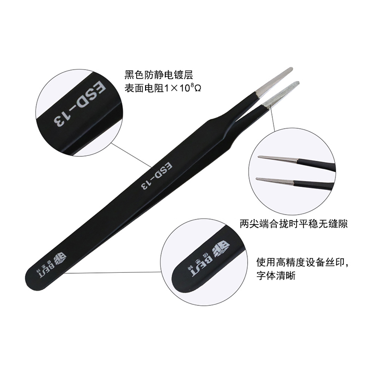 ? 產品名稱: 優質鋼化高級防靜電鑷子? 產品型號: BST-ESD-13? 產品類別: 鑷子系列