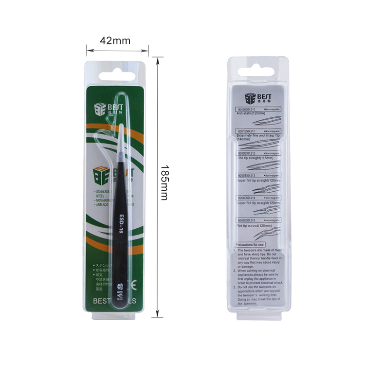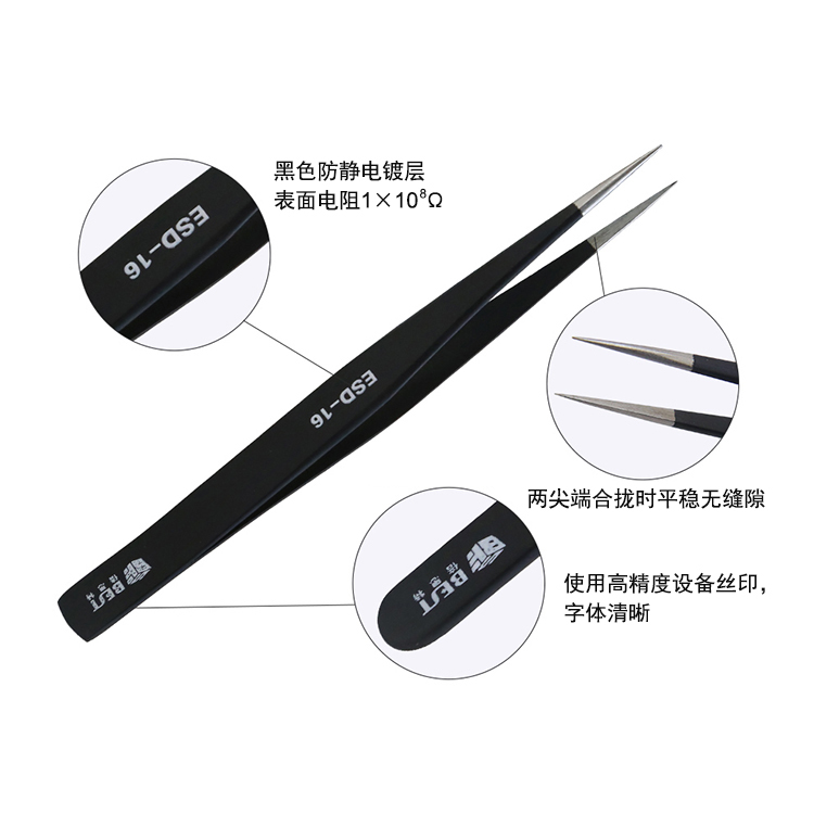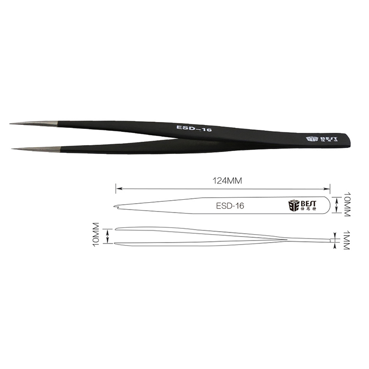 ? 產品名稱: 優質鋼化高級防靜電鑷子? 產品型號: BST-ESD-16? 產品類別: 鑷子系列