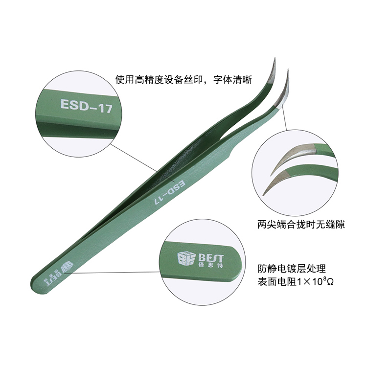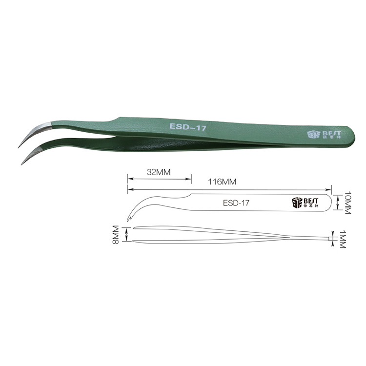 ? 產品名稱: 優質鋼化高級防靜電鑷子? 產品型號: BST-ESD-17? 產品類別: 鑷子系列