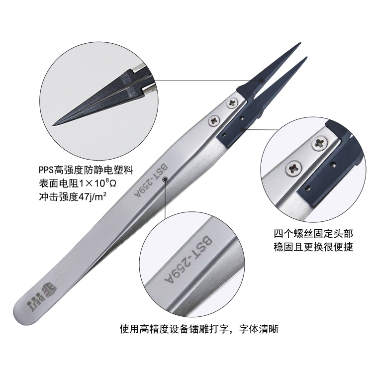 ? 產品名稱: 防靜電鑷子可換頭? 產品型號: BST-259A? 產品類別: 鑷子系列