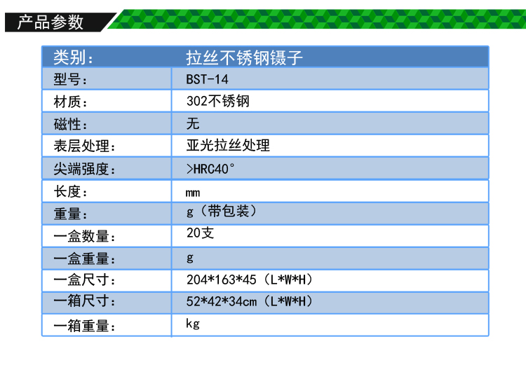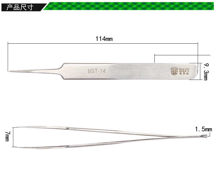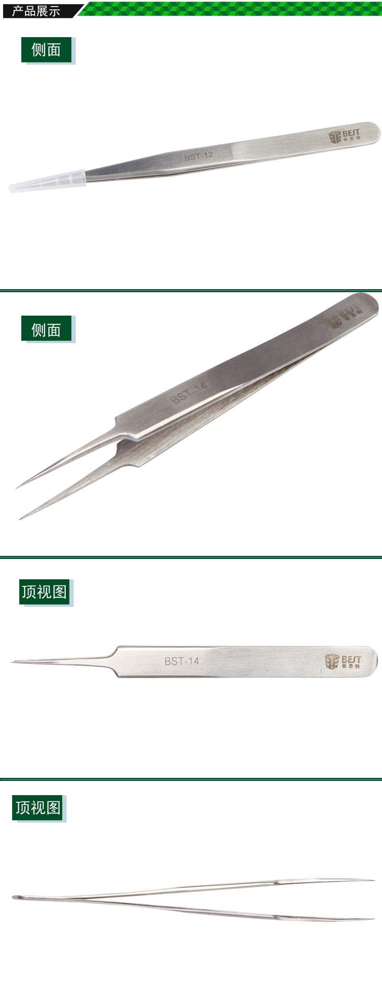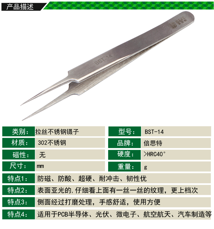 ? 產品名稱: 金屬拉絲鑷子 不銹鋼鑷子? 產品型號: BST-14? 產品類別: 鑷子系列