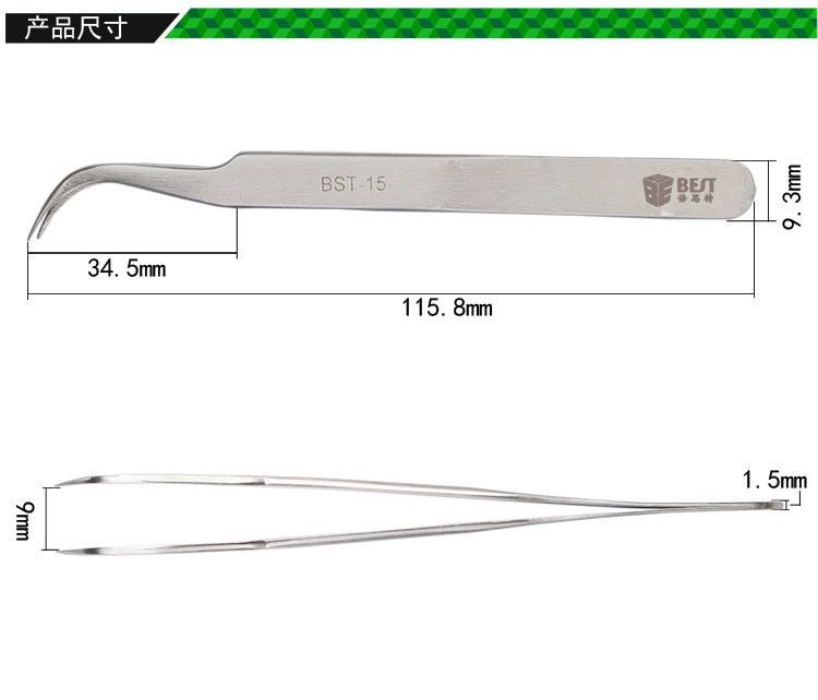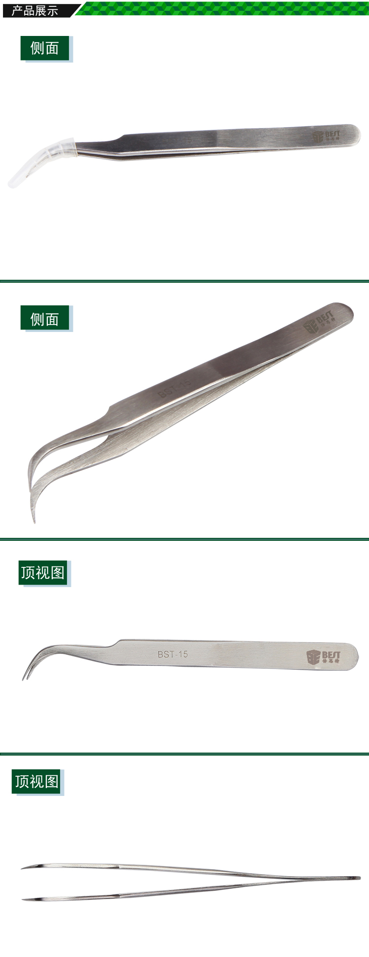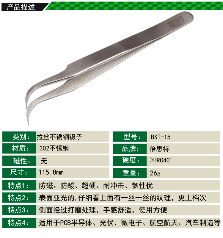 ? 產品名稱: 金屬拉絲鑷子 不銹鋼鑷子? 產品型號: BST-15? 產品類別: 鑷子系列