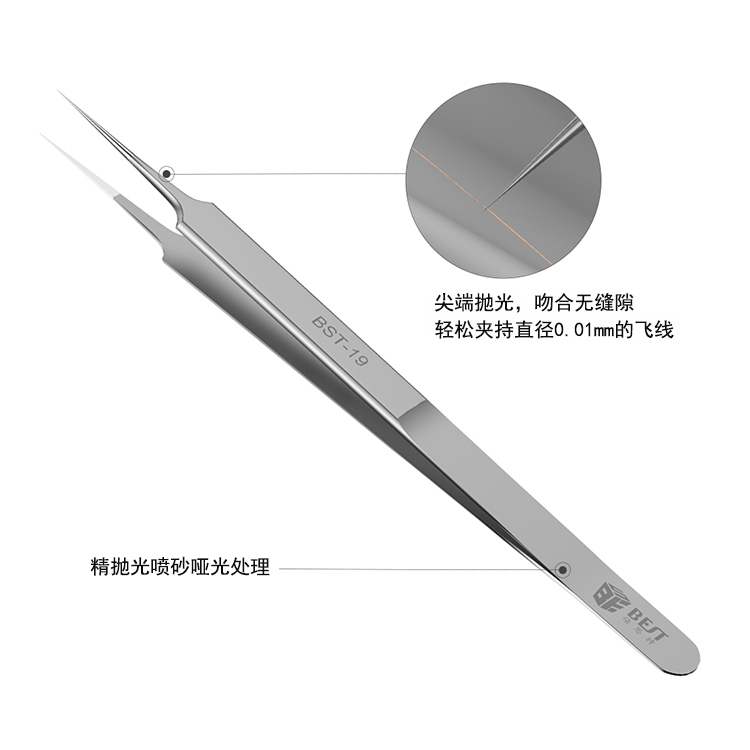 ? 產品名稱: 精品飛線鑷子 特尖鑷子? 產品型號: BST-19? 產品類別: 鑷子系列