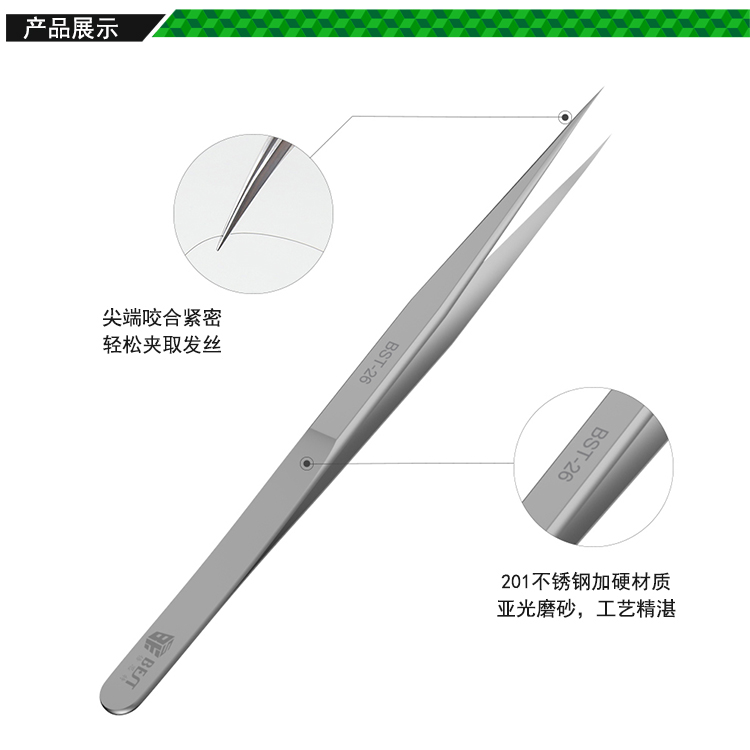? 產品名稱: 亞光鑷子 不銹鋼鑷子? 產品型號: BST-26? 產品類別: 鑷子系列
