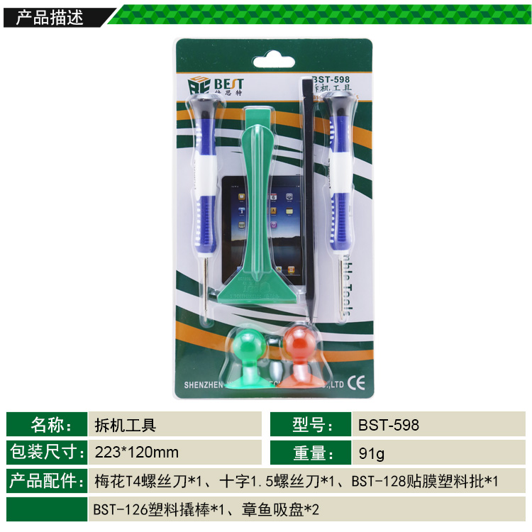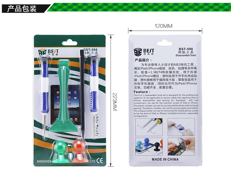 ? 產品名稱: iPad專用開機工具6pcs? 產品型號: BST-598? 產品類別: 拆機工具系列