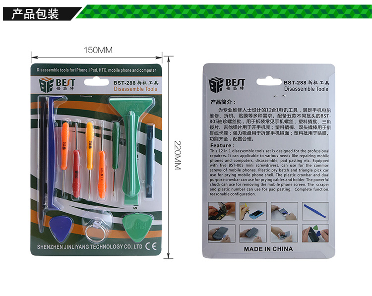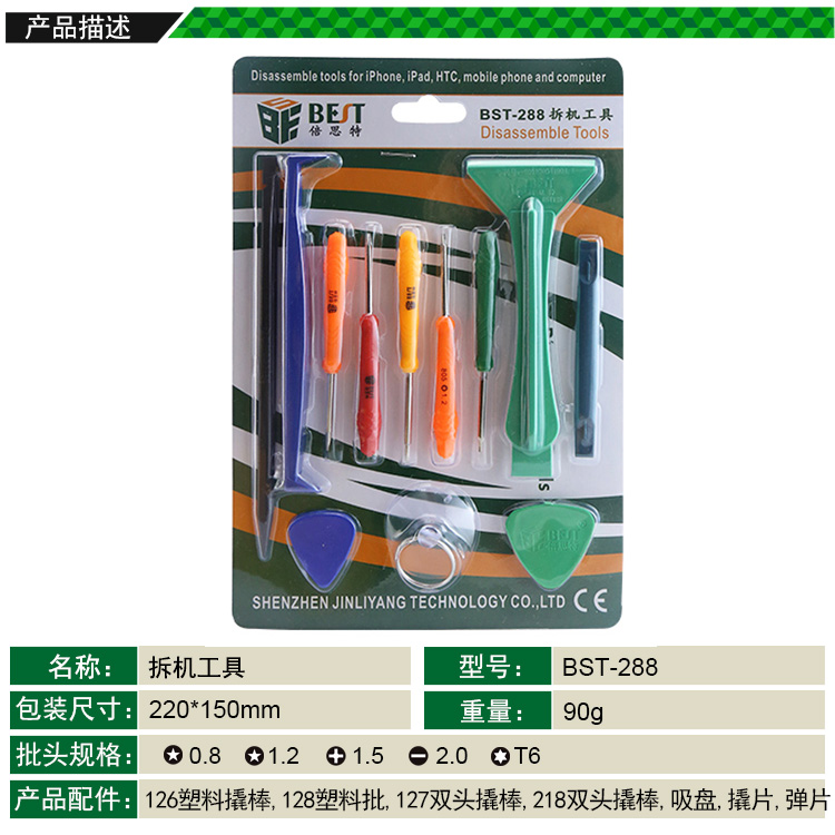 ? 產品名稱: 手機拆機工具12pcs? 產品型號: BST-288? 產品類別: 拆機工具系列