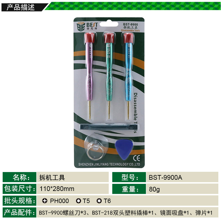 ? 產品名稱: 拆機工具6pcs? 產品型號: BST-9900A? 產品類別: 拆機工具系列