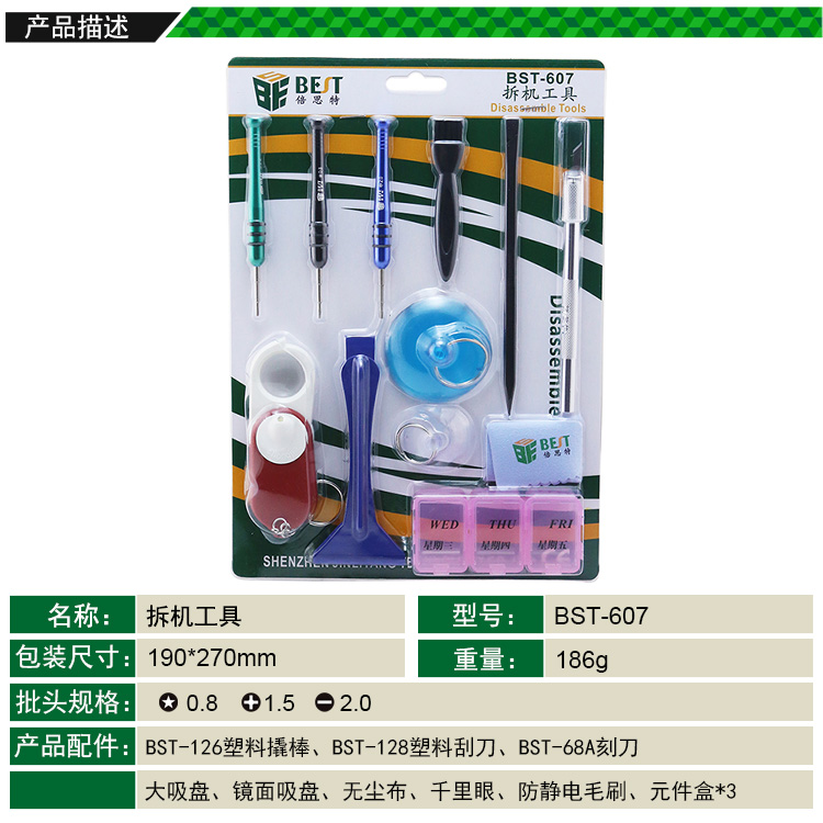 ? 產品名稱: 拆機工具14pcs? 產品型號: BST-607? 產品類別: 拆機工具系列