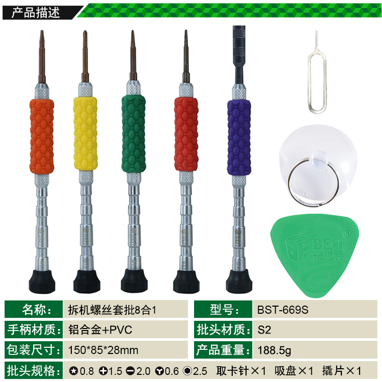 ? 產品名稱: 拆機螺絲套批8合1? 產品型號: BST-669S? 產品類別: 螺絲批系列