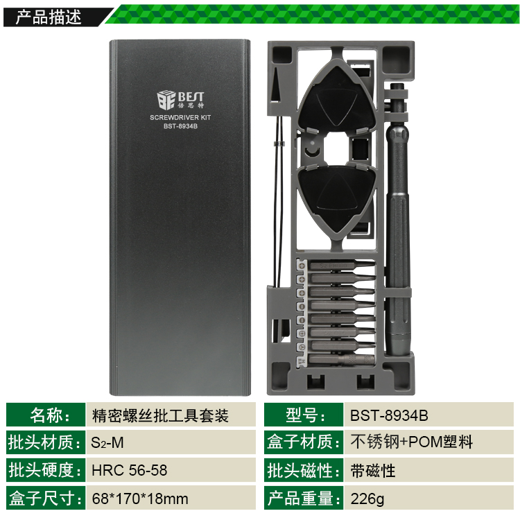 ? 產品名稱: 精密螺絲批工具套裝? 產品型號: BST-8934B? 產品類別: 套批系列