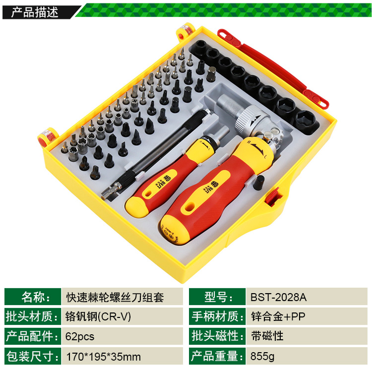 返回當(dāng)前位置: 首頁 / 產(chǎn)品中心 / BST-2028A 62件套 快速棘輪螺絲刀組套