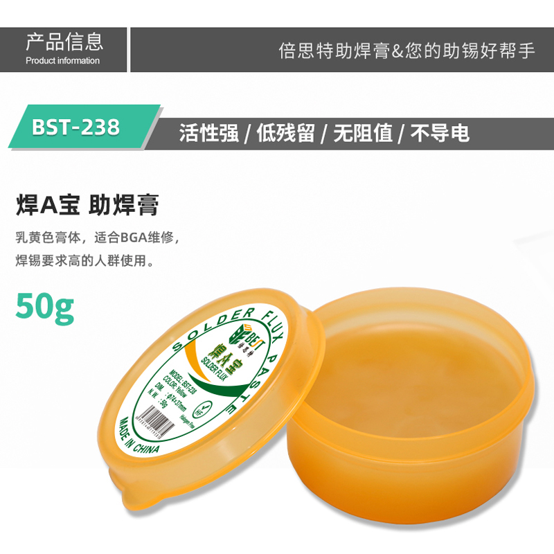 ? 產品名稱: 焊A寶50g 助焊膏? 產品型號: BST-238? 產品類別: 錫漿焊油系列