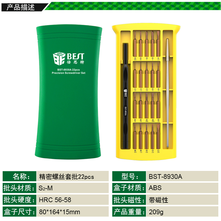 ? 產品名稱: 精密螺絲套批22pcs? 產品型號: BST-8930A? 產品類別: 螺絲批系列