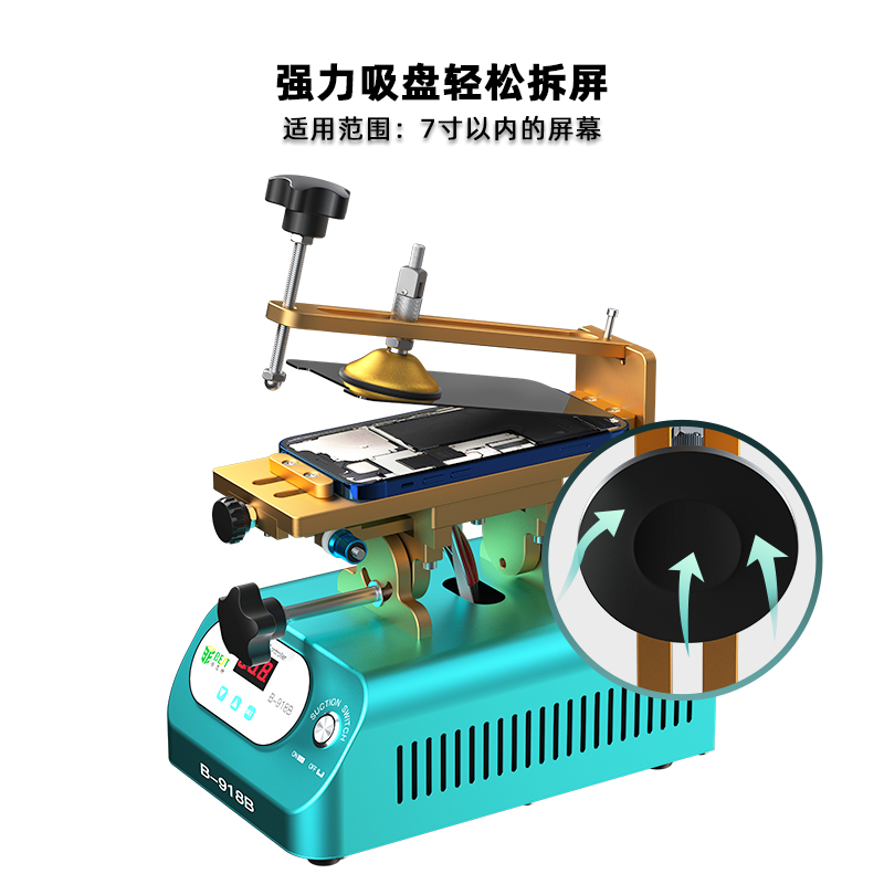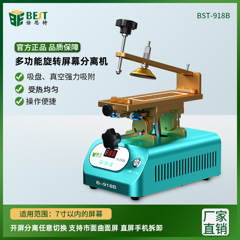 返回當前位置: 首頁 / 產品中心 / B-918B 多功能旋轉屏幕分離機 曲屏拆離旋轉分離機 帶吸盤支架