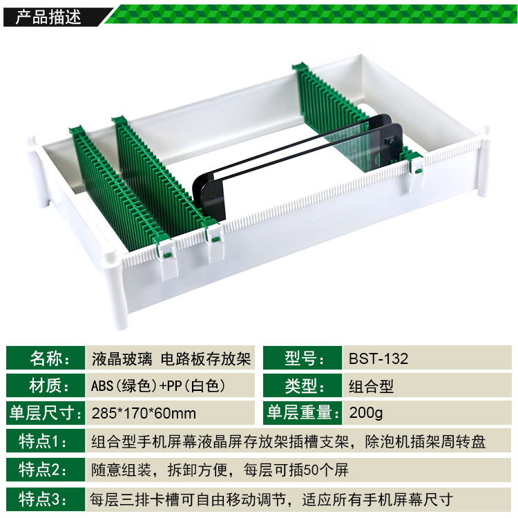 ? 產品名稱: 液晶屏電路板托盤架 插槽支架? 產品型號: BST-132? 產品類別: 元件盒系列