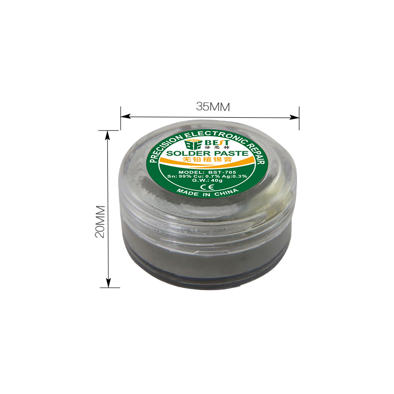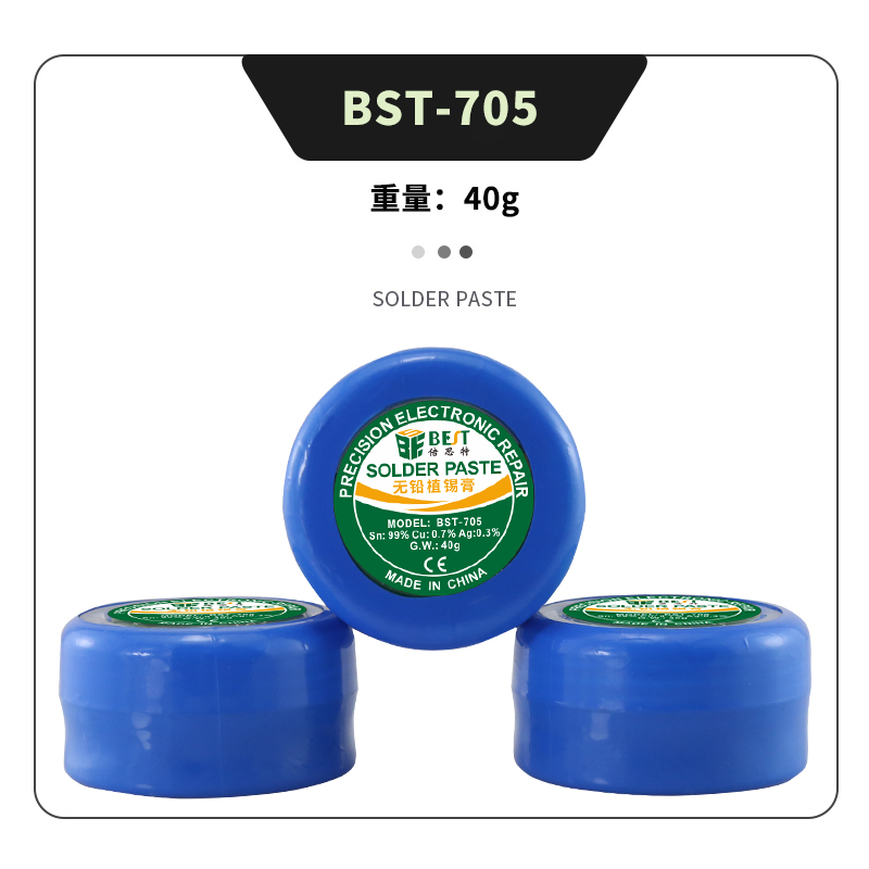 ? 產品名稱: 無鉛錫漿 BGA植錫膏? 產品型號: BST-705? 產品類別: 錫漿焊油系列? 產品毛重: 40g