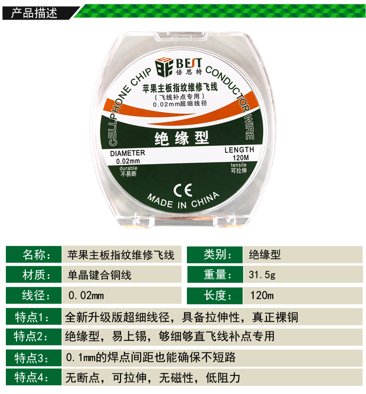 ? 產品名稱: 蘋果主板指紋維修飛線? 產品品牌: BEST? 產品類別: 錫線耗材系列