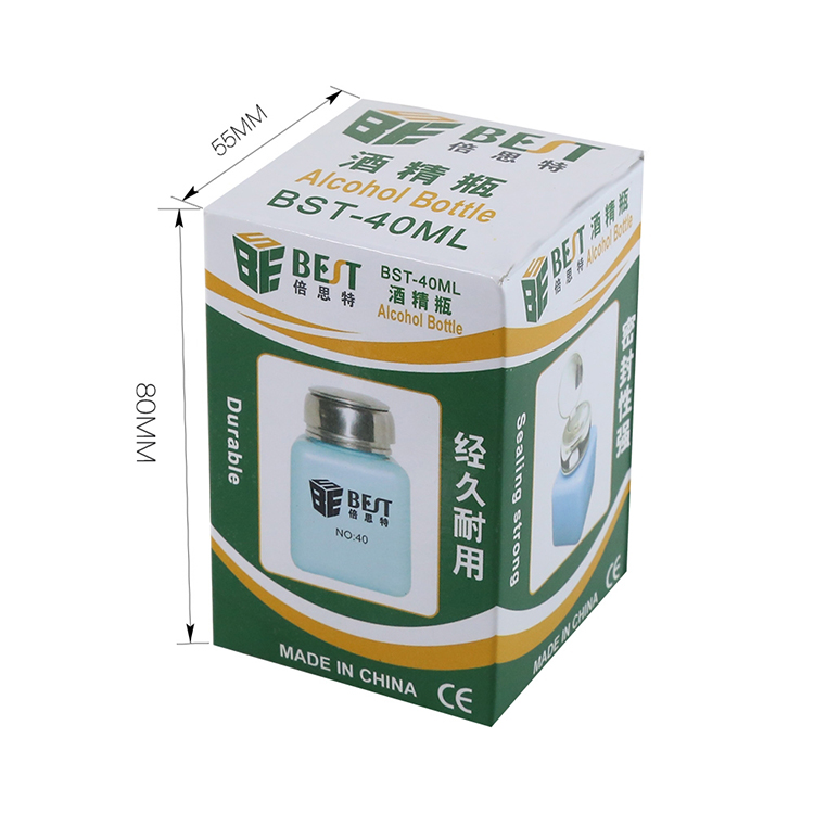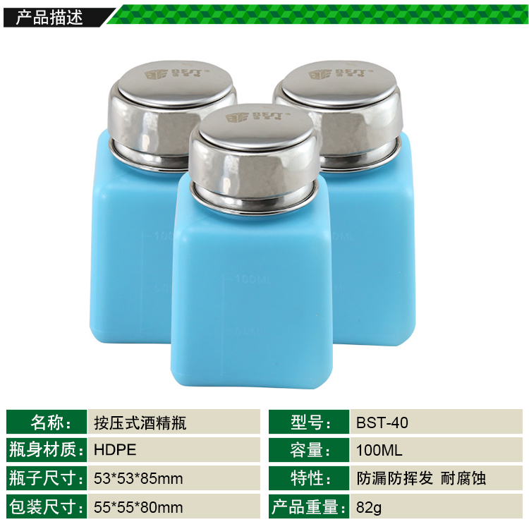 ? 產品名稱: 按壓式酒精瓶 洗板水瓶? 產品型號: BST-40? 產品類別: 清潔劑輔料系列