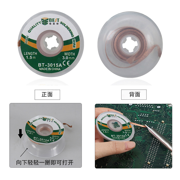返回當前位置: 首頁 / 產品中心 / BST-3015A 吸錫線 非鹵素低殘渣免清洗吸錫帶 清理焊盤必備