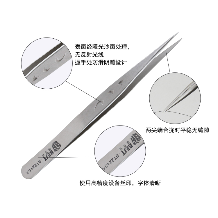 ? 產品名稱: 亞光沙面鑷子 不銹鋼鑷子? 產品型號: BST-224SA? 產品類別: 鑷子系列