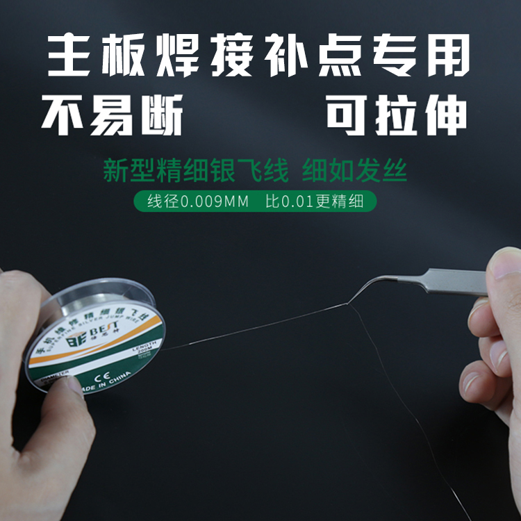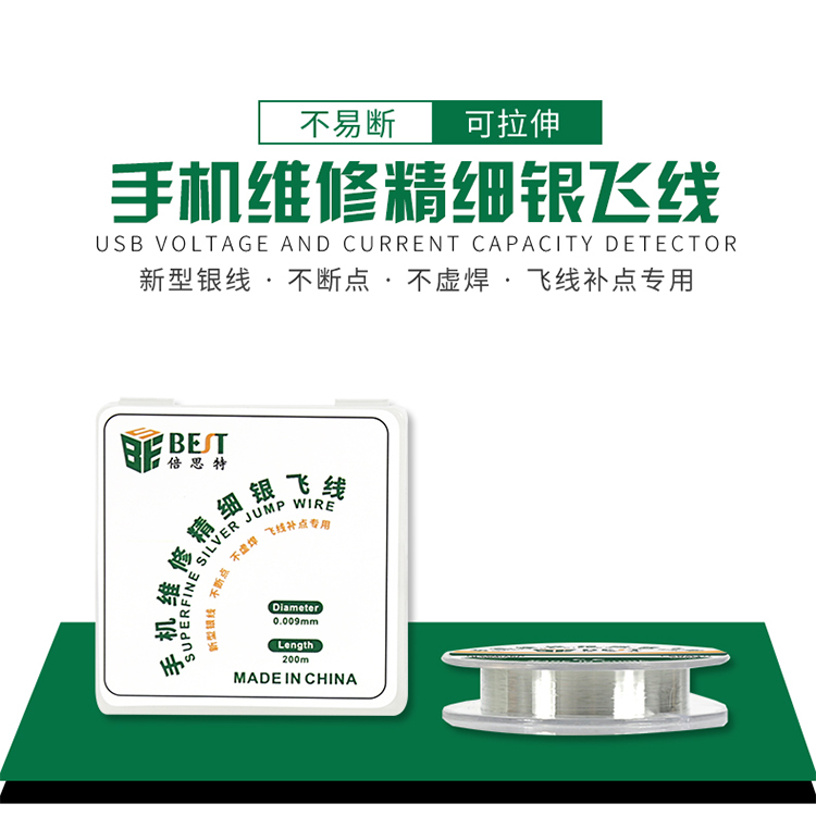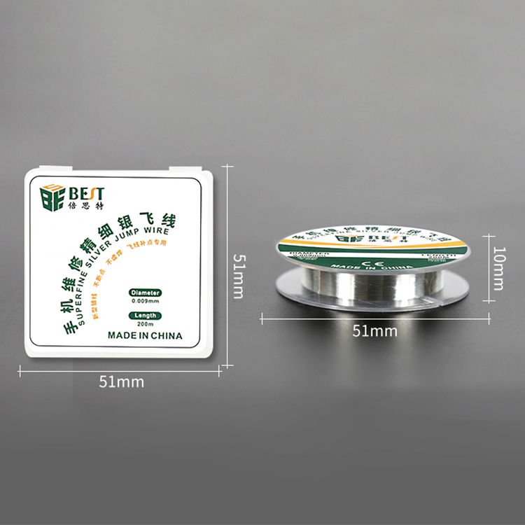 ? 產品名稱: 手機維修精細銀飛線? 產品品牌: BEST? 產品類別: 錫線耗材系列? 飛線線徑: 0.009mm? 飛線線長: 200m
