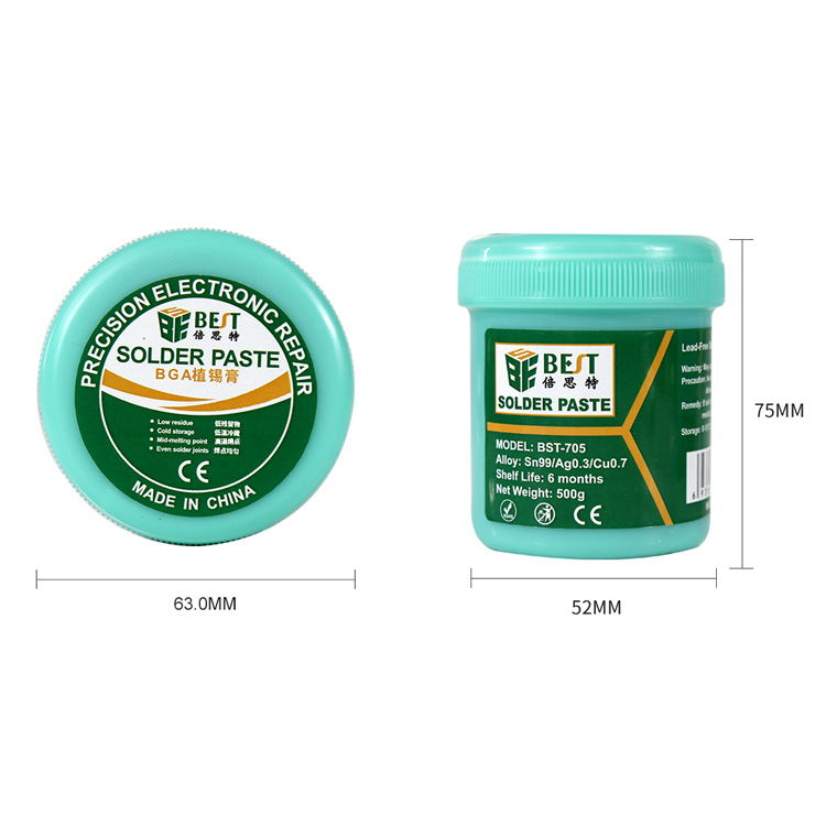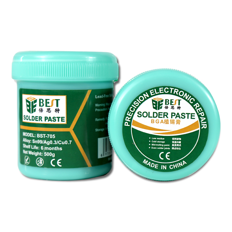 ? 產品名稱: 無鉛錫漿 焊錫膏 BGA植錫膏 500g? 產品型號: BST-705? 產品類別: 錫漿焊油系列? 產品成分: Sn99/Ag0.3/Cu0.7? 產品重量: 500g