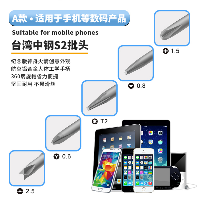 返回當(dāng)前位置: 首頁(yè) / 產(chǎn)品中心 / BST-9905S 精密螺絲刀套裝五支裝 S2螺絲刀頭 神舟火箭創(chuàng)意外觀螺絲套批5pcs