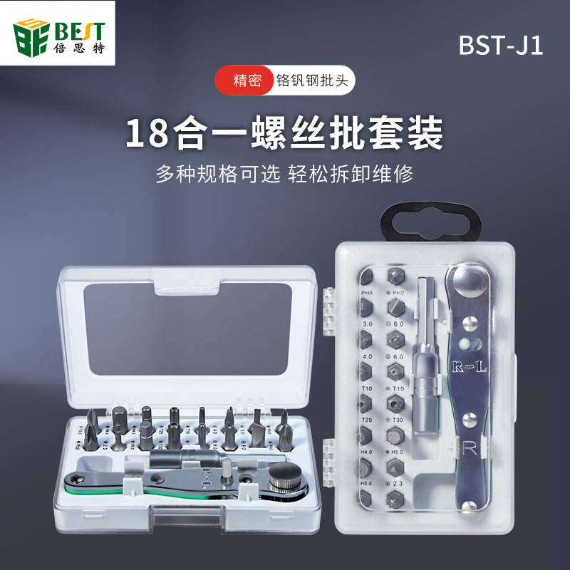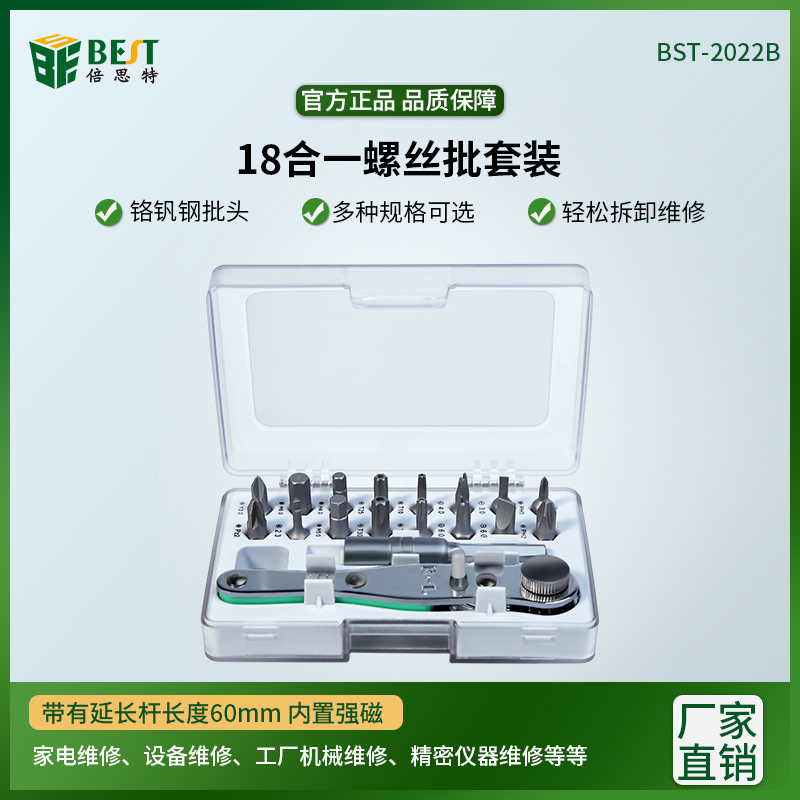 ? 產品名稱: 雙向棘輪18合一螺絲批套裝? 產品型號: BST-2022B? 產品類別: 套批系列